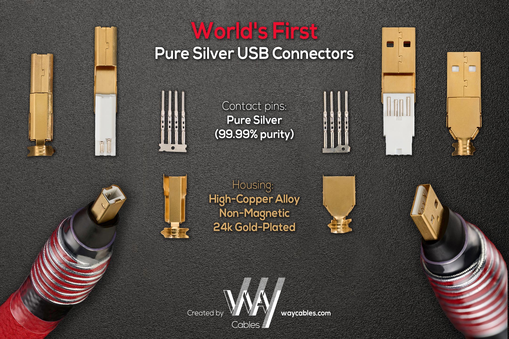 All components of the X‑Series cables are thoughtfully selected, customized, or proprietary by WAY Cables. From hand-polished 6N single-crystal silver conductors and world‑first silver connectors to multilayer natural cotton insulation, genuine leather damping, and advanced shielding, each material is chosen to deliver astonishing sonic clarity and musical essence.